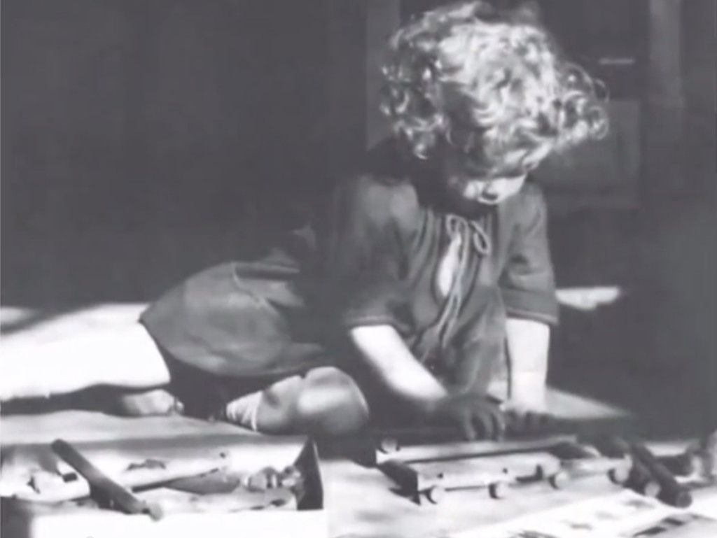 Elizabeth Wright Ingraham plays with Lincoln Logs as a child.