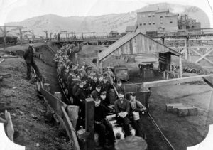 On October 8, 1910, the mine exploded when a spark from a short circuit ignited the ever-present coal dust in the air. Fifty-six miners lost their lives in the tragedy. The explosion wasn’t the only danger. “Afterdamp” is a deadly combination of gas and dust that is essentially a blanket of carbon monoxide. When rescuers opened up parts of the mine that had been cut off in the blast, they found bodies surrounded by empty pails. As the miners had waited for rescue, they sat down to eat a meal. One by one, they died from the effects of the afterdamp.