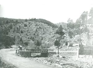 in Indian Hills. Located southwest of Morrison at Parmalee Gulch, Indian Hills was platted in the early 1920s as a summer-home community by George W. Olinger, head of the mortuary. Olinger had conceived of the idea of attracting city dwellers to seasonal homes. Joe Bona acquired a lot high on the ridge looking into Turkey Creek and the turnoff area to Parmalee Gulch. He built a large rustic lodge in this prime spot and named it Bona Vista. Having a stone foundation, the lodge had a unique exterior of bark-covered wood slabs laid in herringbone and other patterns. The film folk came in to stay with the Bonas in the summer. Today, the house on Santa Clara Road still stands, but the exterior has been covered with stucco.