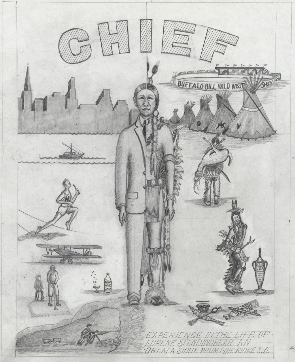 More than 300 of Standingbear’s works were incorporated into History Colorado’s collection in January, in time for us to add them alongside the RACEexhibit this month. The collection donors, the Okada family, were themselves once caught between two worlds—as the family of Japanese immigrants forced to move from the West Coast in the throes of World War II, when they chose to settle here in Colorado. The impact of that experience helped cement their friendship with Eugene Standingbear and opened an appreciation of his works—art that reflects a life lived in two worlds, and works they thankfully saw fit to share with History Colorado and our audiences.