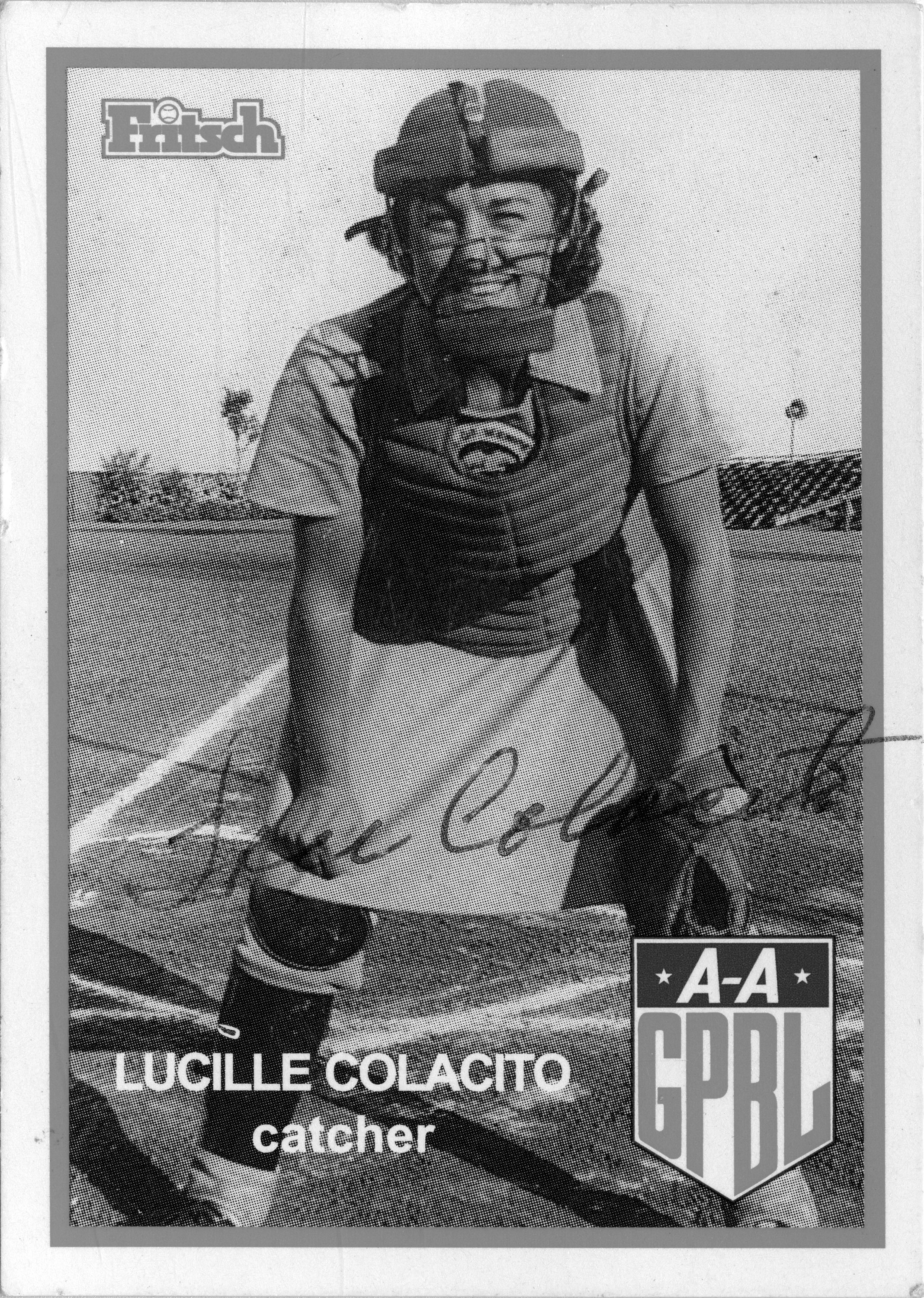 Around 1939, Lou started playing softball for local teams. One of her coaches was Mike “Buck” Colacito; they married in 1941. When Buck went overseas in World War II, Lou signed a contract with Wisconsin’s Kenosha Comets, a pro baseball team.
