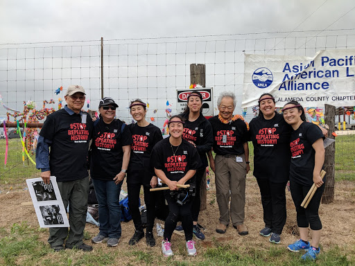 The Ozaki family in Crystal City, Texas with Tsuru for solidarity. From left to right: Charles, Teri, Nancy, Shannon, Meg, Joe, Keiko, Courtney.