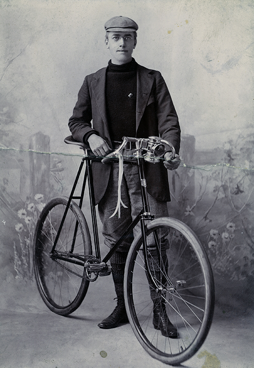 But Clatworthy had the travel bug long before his famous autochrome work. As a young man, he studied a variety of disciplines including medicine and law, and relocated frequently (he spent time at Denison University in Ohio, Stetson University in Florida, and the University of Chicago Law School). Yet no career (except photography) nor location seemed to appeal to him for very long. At the age of 23, Clatworthy conceived of a plan to seek his fortune in the West. While the idea of “Going West” was not unique at the time, Clatworthy’s intended method of travel was uncommon. He planned to make the journey from the family home near Chicago to the western states of Colorado, New Mexico, Arizona, and California via bicycle.