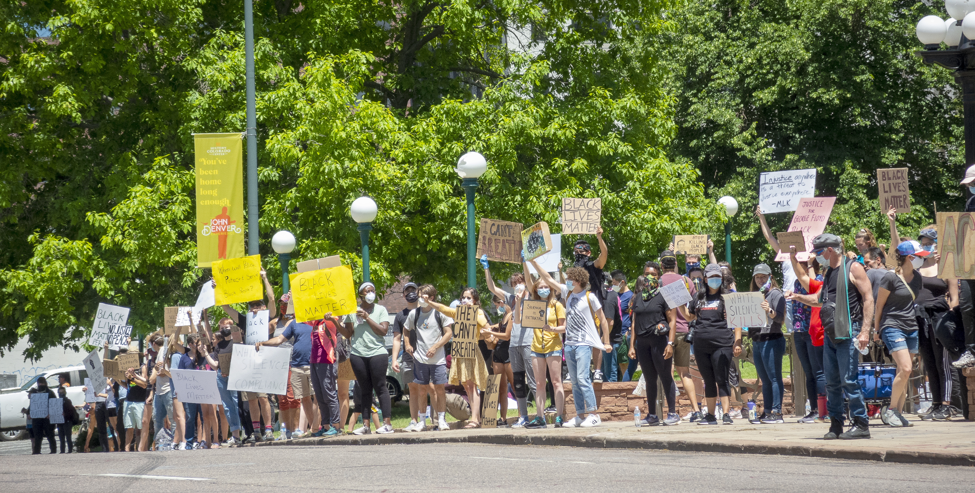 Protestors lined the streets near the Capitol building in downtown Denver to voice their disgust over police brutality and social injustice.