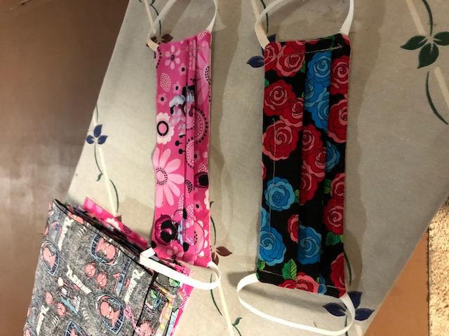 The women's group “Dena's Mask Making Army” makes masks at home for health-care workers on the front lines of the pandemic. Photo by Mary Carson.