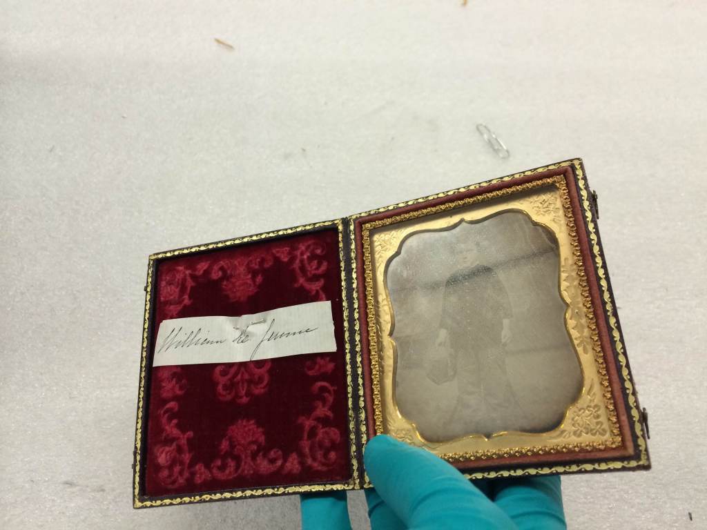 Did you know that October is American Archives Month? To celebrate, we’ll be sharing some behind-the-scenes stories from our Photograph Collection and highlighting some of the work we do to preserve, organize, describe and provide access to the images in our collection. This summer our staff, interns and volunteers have been been digitizing, researching and cataloging our Early Photography collection: 600 daguerreotypes, ambrotypes and tintypes.
