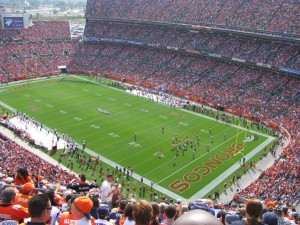 Mile High Stadium during a Denver Broncos game.