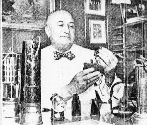 Max Grimes and collection of miners' lamps.