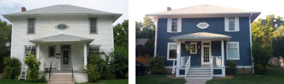 The Cooke's home before work began (left) and after work was finished (right).