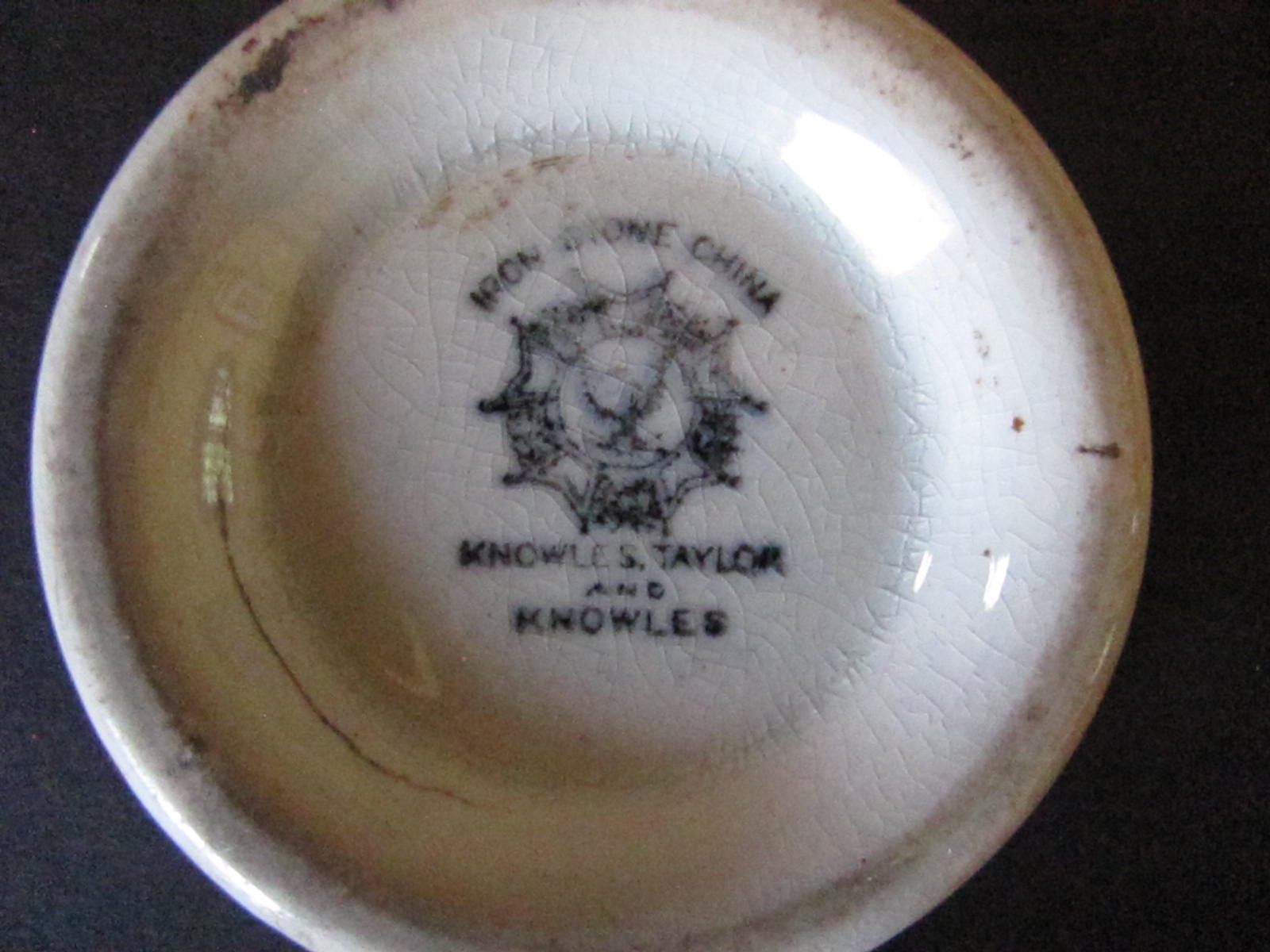 As the bulk of what we’re dealing with are “hotel wares,” much of what we’re seeing are undecorated whitewares, or ironstone. While individual sherds of a broken plate may not tell us much, sometimes we get lucky and find a maker’s mark. A “maker’s mark” is the stamp a pottery maker placed on the bottom of their pieces to indicate who made them. Maker’s marks varied not only from company to company, but a company would also change its unique marks through time. Some marks or stamps were even specially created to indicate a new pattern or commemorative run of something.