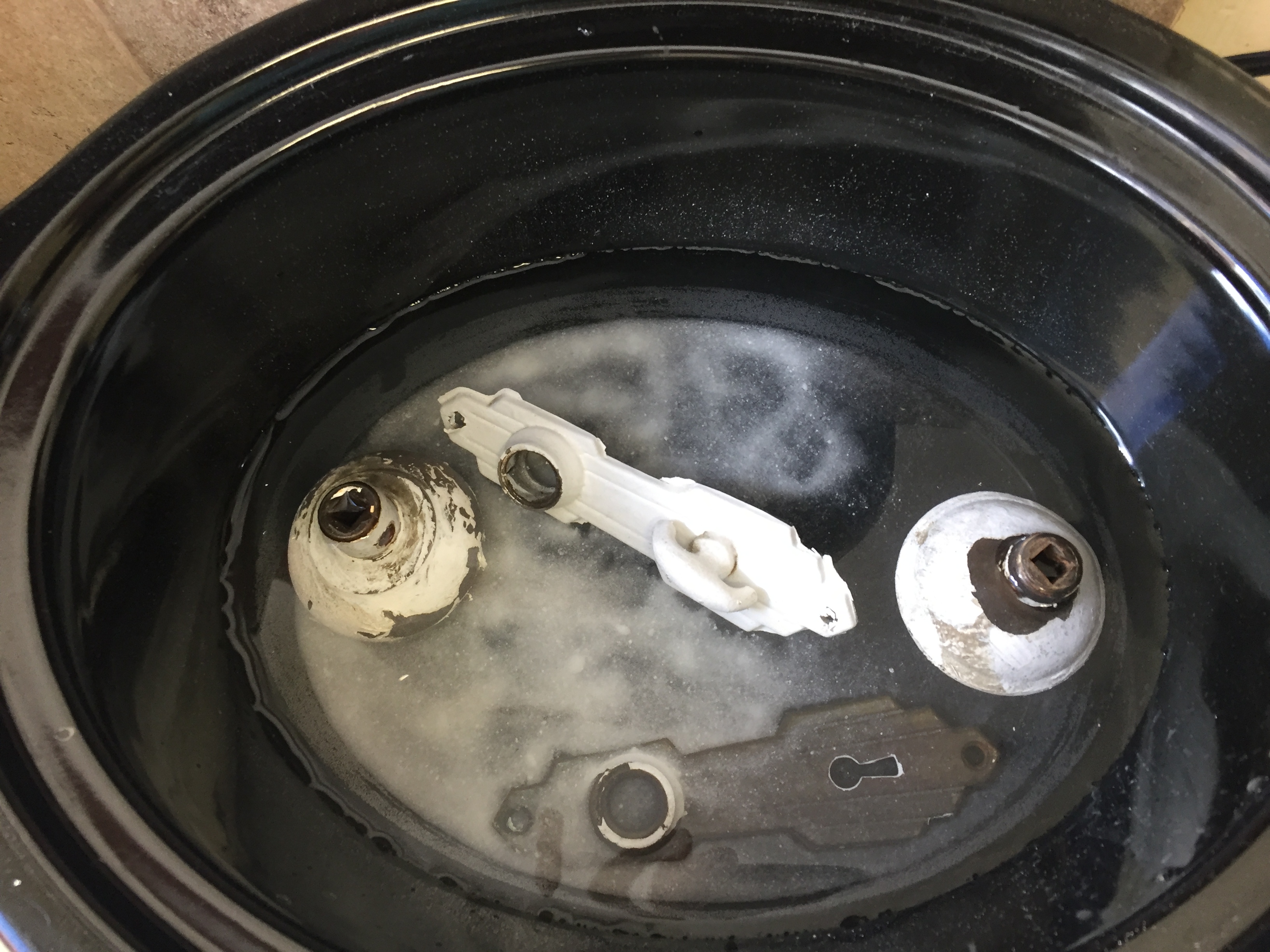 Door knobs in slow cooker with mild detergent