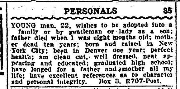 4. Young man seeks mother, father . . . and possibly inheritance.