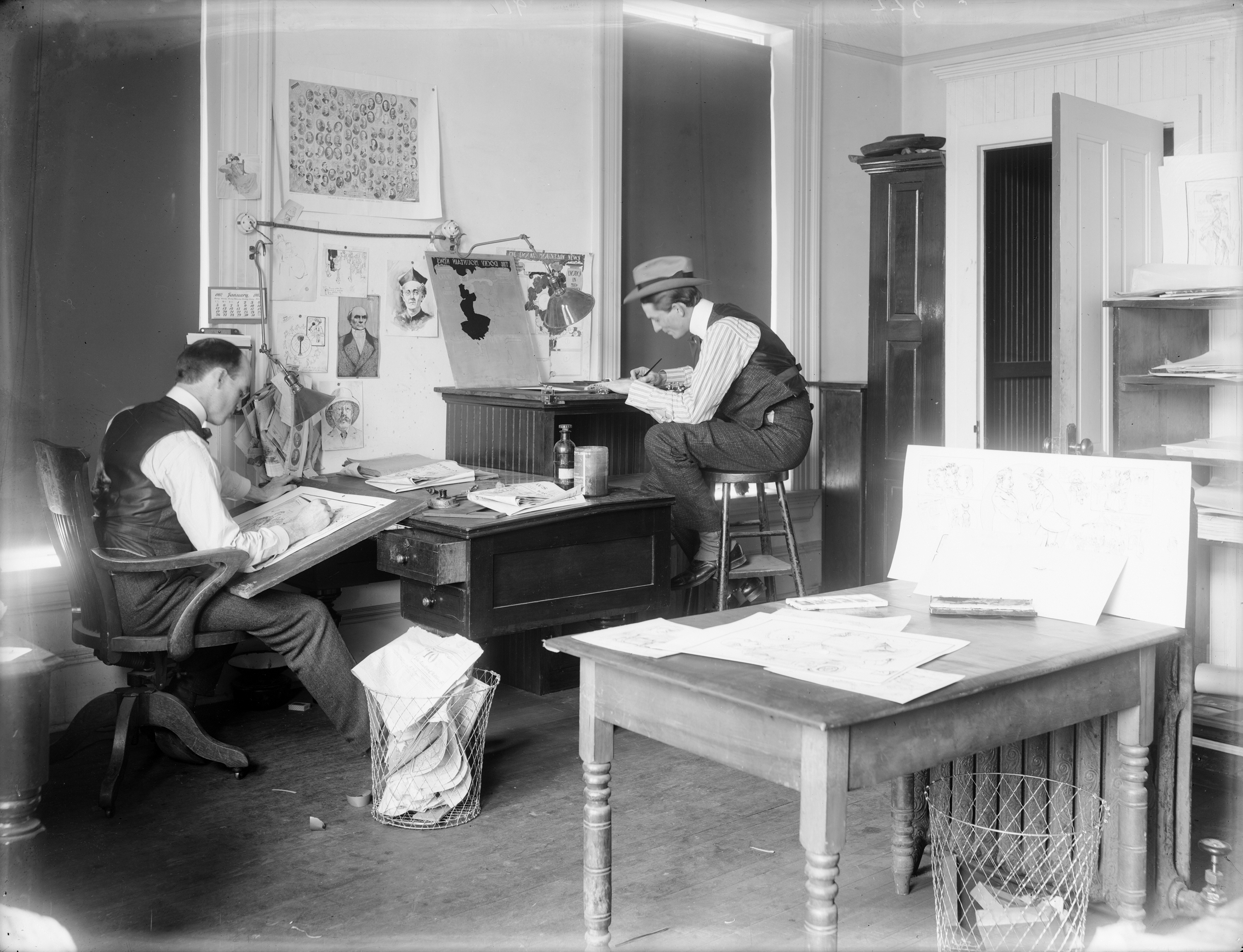 Rocky Mountain News employees at work in the newspaper's art office, January 1902.