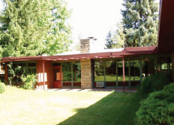 The idea behind Usonia was about more than just designing smaller houses. It was about planning, nature, and simple design on a human scale. Wright’s concept for Usonia came about due to his increasing focus on community, planning, and serving human needs. He was interested in setting up decentralized communities with commercial, residential, educational, industrial, cultural, and recreational facilities. While his early concepts of these communities remained just that, many of the components were applied in a handful of places across the country, though not on the scale that he originally envisioned. As Wright did with the Prairie style of his earlier fame, he also incorporated the smaller Usonian house with the site. Wright integrated the house with the landscape and nature in an attempt to get away from box-like structures. Walls extended beyond the interior to the outside, intermingling the two. Large windows brought the outside in. Natural materials blended the house with the site and warm colors on the interior further contributed to the feeling of bringing the outdoors inside. Usonian houses were quite unlike the boxy, stark International Style houses that appeared to be dropped onto, rather than a part of, their location.