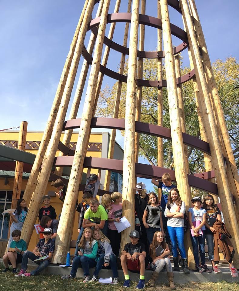 A group of children in the wickiup at Ute Indian Museum on a field trip.